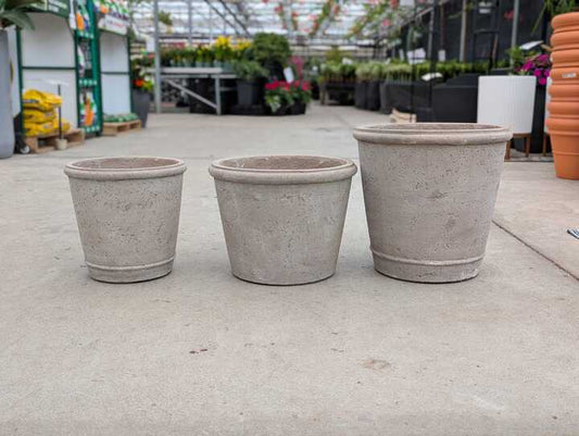 Greige Lined Terracotta Planter | 17 inch Diameter